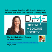 Happy Independence Day, everyone! Today's guest is the Executive Director of a brand new society, The Digital Medicine Society! Jennifer Goldsack, MChem, MA, MBA, OLY Bio: Jen Goldsack is VP of Digital Measurement at monARC Bionetworks and serves as the Interim Executive Director of the Digital Medicine Society (DiMe). Previously, Jen spent several years at the Clinical Trials Transformation Initiative (CTTI) where she led development and implementation several projects within CTTI’s Mobile Program and was the operational co-lead on the first randomized clinical trial using FDA’s Sentinel System. Jen spent five years working in research at the Hospital of the University of Pennsylvania, first in Outcomes Research in the Department of Surgery and later in the Department of Medicine. More recently, she helped launch the Value Institute, a pragmatic research and innovation center embedded in a large academic medical center in Delaware. Jen earned her master’s degree in chemistry from the University of Oxf